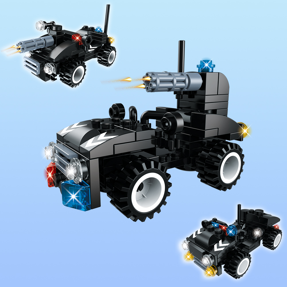 Штурмовой отряд был создан для решения сложных ситуаций в Plasy City - там где не справится обыкновенный патруль на помощь примчится штурмовой отряд! В отряде собраны восемь уникальных штурмовых техник, каждая из которой умеет меняться под разную историю вашего остросюжетного приключения. А если собрать всю команду из восьми моделей Штурмового отряда, то можно создать БОЕВОЙ ГРУЗОВИК, который не одолеть ни одному негодяю вставшему на вашем пути!